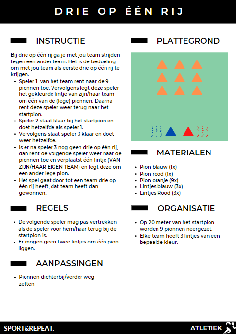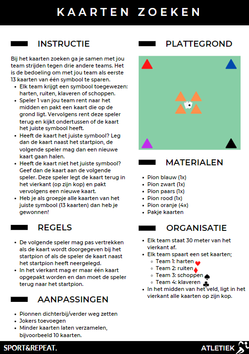 Sprinten Oefeningen om het sprinten te oefenen: Drie-op-een-rijBekijken Kaarten-zoekenBekijken Steen-papier-schaarBekijken